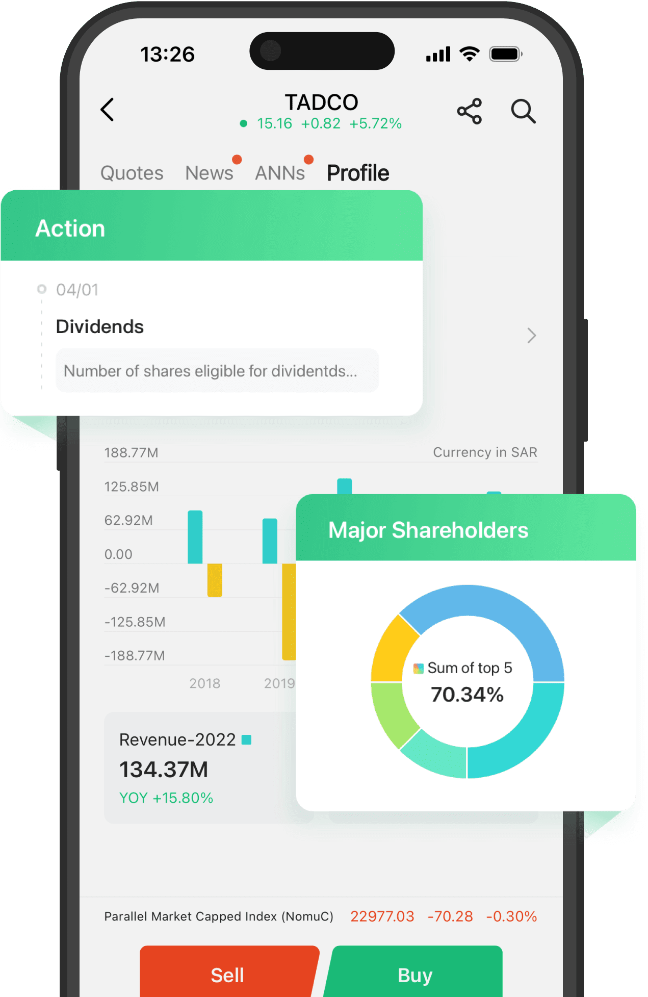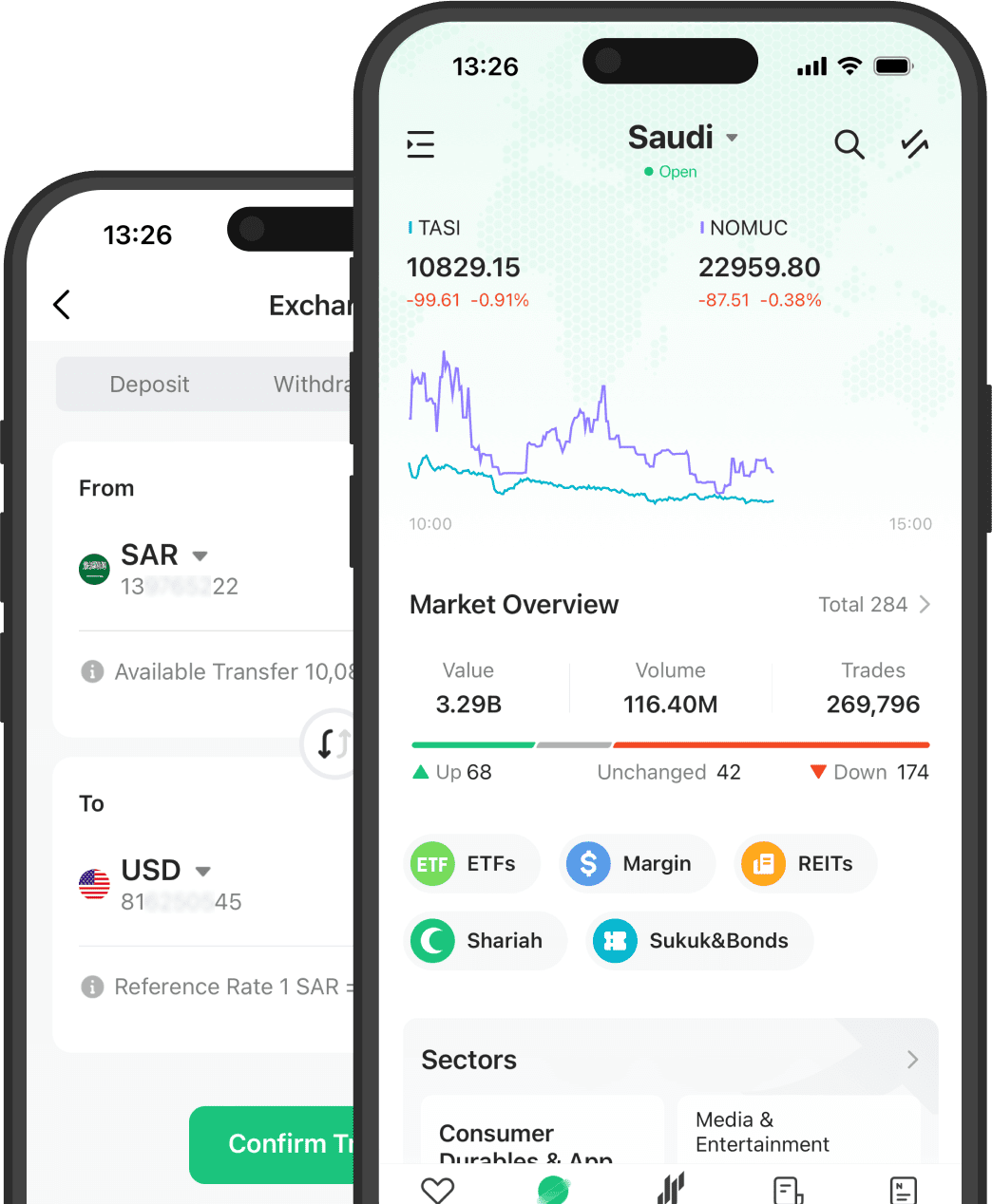 Oversee your investments across both the Saudi and U.S. markets using a single portfolio within one App. Enjoy a seamless transition with just a tap and the convenience of trading various assets, including ETFs, REITs, OTCs, warrants, and more, all in one place.